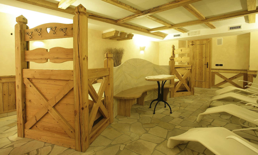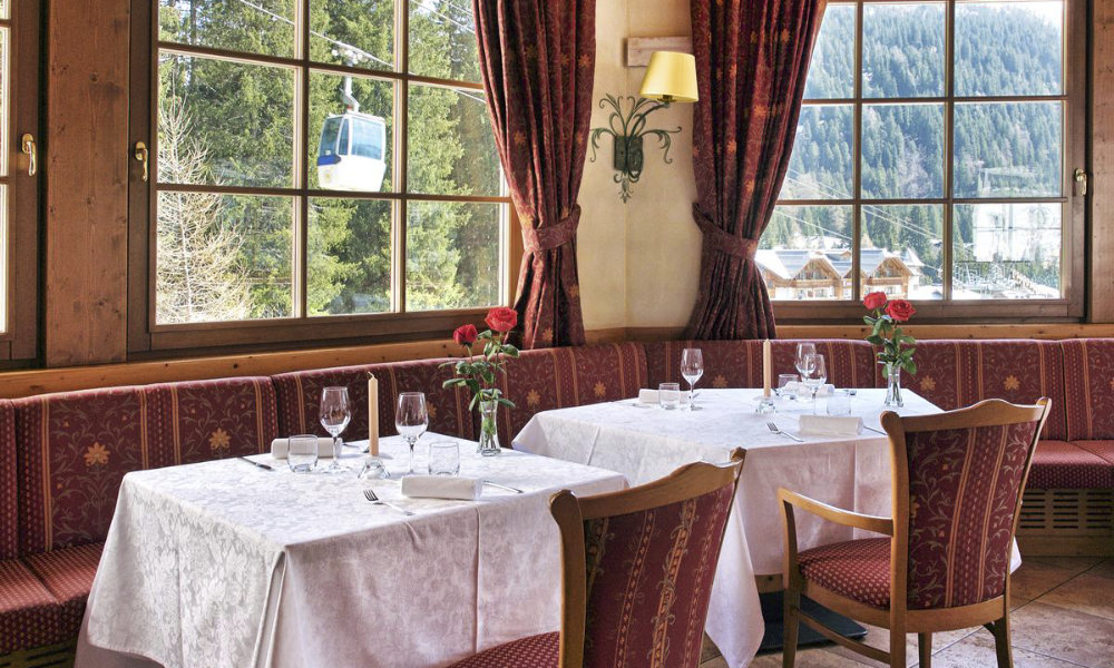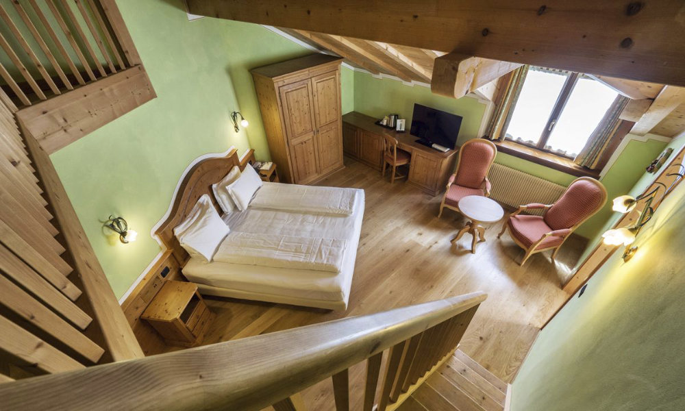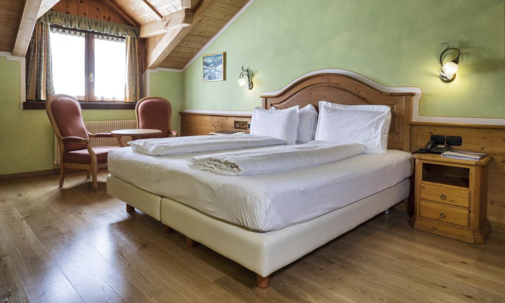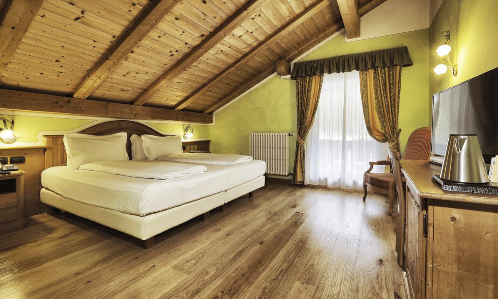 Pokoje jsou jako u většiny horských hotelů v alpském stylu. Z balkonů se nabízí výhled na okolní krajinu i městečko Madonna di Campiglio.