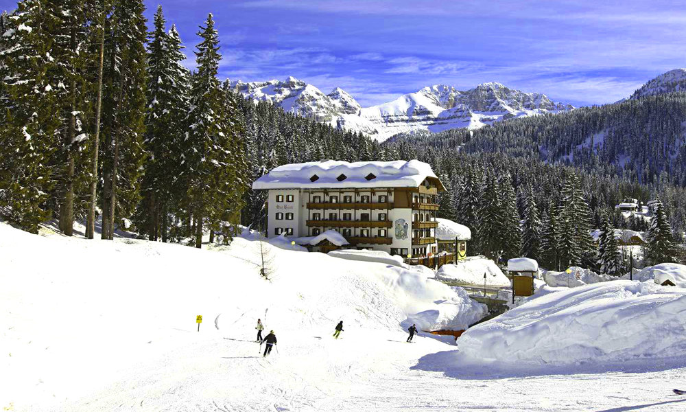 Hotel Bertelli má současně také vynikající polohu, mírně nad městem, v blízkosti dolní stanice lanovky Pradalago. Z hotelu k lanovce sjedete, poté co přejdete vozovku, na lyžích. Do hotelu pak dojedete ze svahu opět téměř na lyžích – je potřeba opět jen přejít silnici. Po lyžování určitě využijete nadstandardně vybavený wellness tohoto komfortního hotelu, Wellnes nabízí bazén, saunu, páru, relax zónu. Večer se pak můžete vydat do centra Madonny, které je vzdáleno jen cca 450 metrů od hotelu.